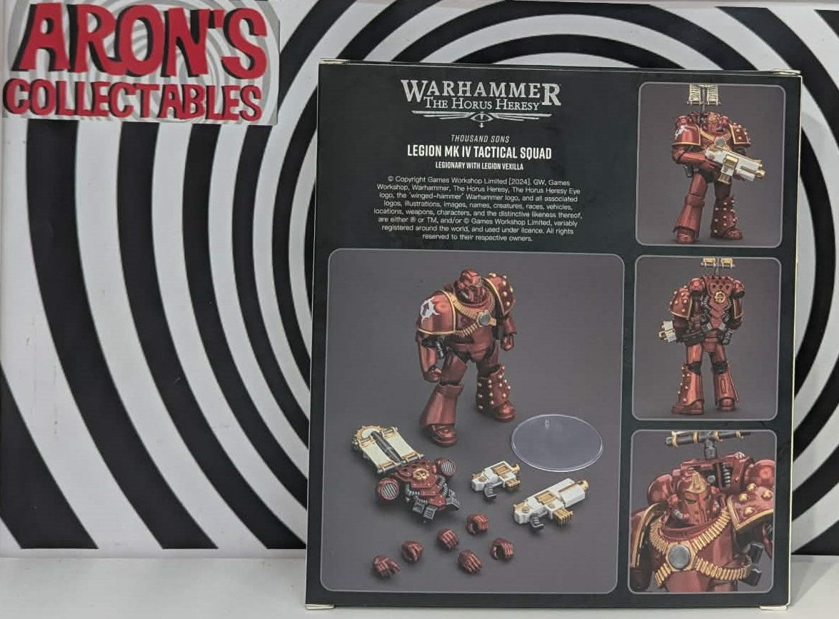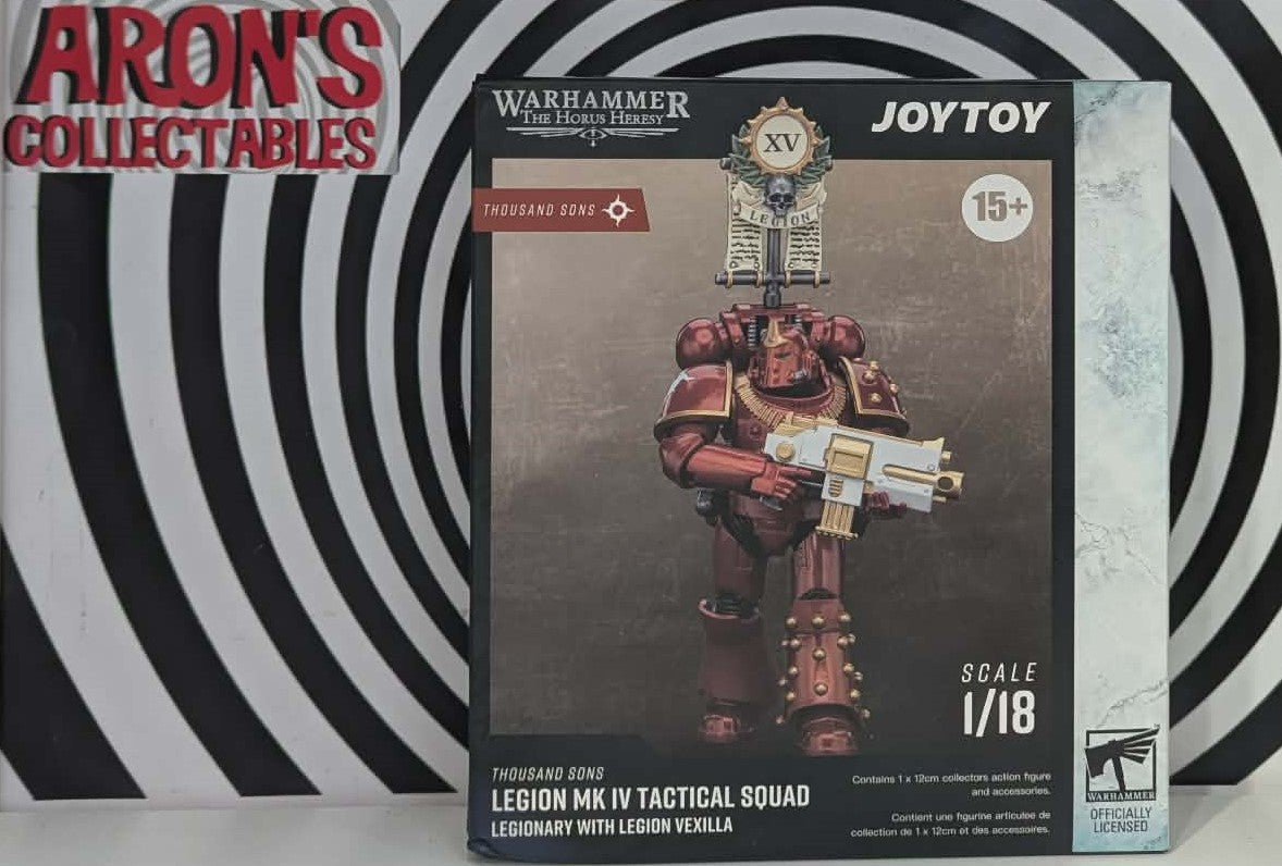 There is only War. Joytoy presents Warhammer 40K featuring Legion MK IV Tactical Squad Legionary. Figure includes Legion Vexilla Back Pack, Bolter Pistol, Bolter Rifle 6 Alternate Hands and Figure Base.